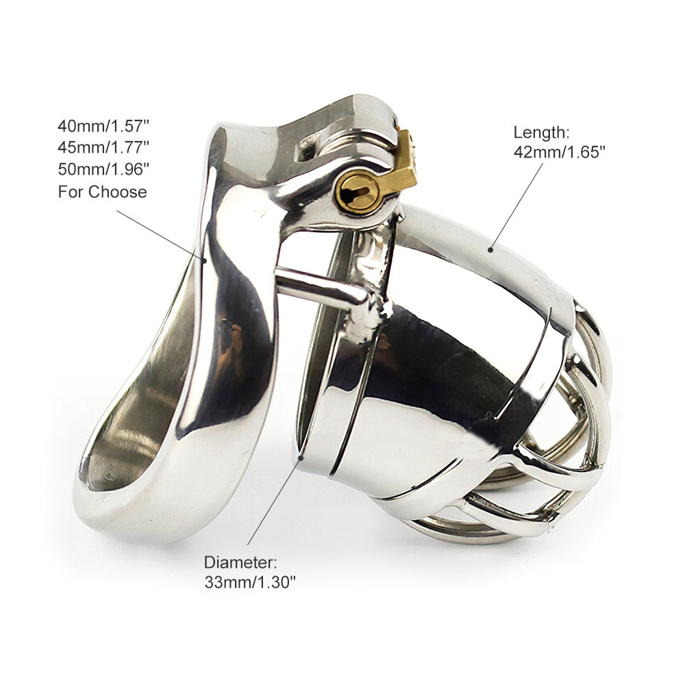 Material: Stainless SteelCage Length: 42mm(1.65")Cage Diameter: 33mm(1.30")Ring To Choose From: 40mm(1.57") , 45mm(1.77"), 50mm(1.96")